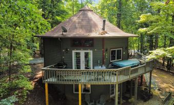 Large Octagon Cabin on Double Lot! Hot Tub, Fire place, Game room, Fire pit!