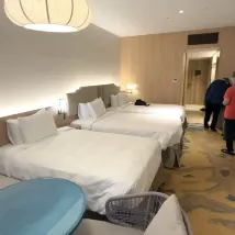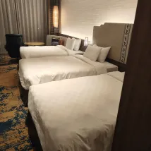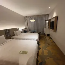 酒店房間設計很好,乾淨 廁所乾濕分開,空間感很大,花灑水壓很強,沖涼水夠熱很舒服 雙床房型,將兩床合拼一起睡,極大極舒服,枕頭有軟及硬兩個,冷氣夠凍 有梳化及枱,每晚都可以舒舒服服兩人一起坐著睇住電視吃宵夜 電視可連youtube等 露台很大,望遊艇會及大海,很舒服 設施也好 有一幢獨立停車場免費泊車,但每晚遲回來基本上都已滿,要不就是泊天台露天位,要不就是露天的傷殘後備車位,導致白天取車時,車曬到很熱很熱,建議想想改善方案 隔離就係Round 1, 又有商場,又有烤肉店,酒店後面有24小時超市