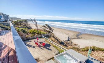 You'll enjoy the seclusion and the natural beauty of the coast plus all the amenities you want in a vacation home with a stay at Oceanstream just south of Lincoln City. An oceanview hot tub screened by twisted beach pines and a bamboo grove will make you feel like you've landed on your own private island, with a bricked path that accesses miles of unobstructed beach for your walking pleasure. The home itself features a main-level entryway, great room and a fabulous queen master suite, perfect for those who find stairs hard to manage. Luxurious leather couches surround a romantic wood-burning fireplace in the great room, with ocean views and hardwood floors connecting a kitchen, breakfast bar and spacious dining area that opens to a large deck overlooking the Pacific. Downstairs, you can also access the outdoors through sliding doors to the hot tub and beach from a large, comfortable bonus room with TV, two twin beds in a cozy alcove, and a large sleeping area with a queen bed and floor-to-ceiling accordion doors for privacy. A second wind-sheltered, wooded deck gives you a place to relax outdoors. Your location south of Lincoln City puts you close to the dramatic beauty of Depoe Bay and the aquarium, Hatfield Marine Science Center and bustling fishing harbor of Newport. Oceanstream's rejuvenating combination of nature and comfort will make you fall in love with the Oregon Coast all over again.