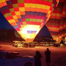 Отличные две террасы,с которых можно наблюдать шары. Ухоженный и чистый внутренний двор. Красивый вид на город. Персонал дружелюбный , не навязчивый.