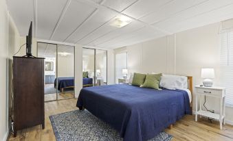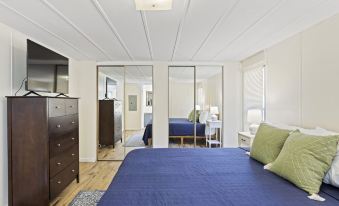 On one side of the home is our spacious Master bedroom which has a King bed, two nightstands and reading lamps, dresser, closet, and a Smart TV.