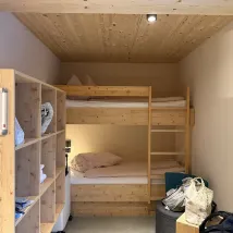 酒店非常便利 青年旅社風格 服務很好 早餐很全 停車免費 説説不足:房間很小,窗外是在建的樓,沒有view可言,儘量去外面的餐廳二層那邊視野很好 菜品不錯; 沒有拖鞋,浴室沒有門,沒有冰箱、保險箱,沒有牙刷,洗浴是三合一,自己要帶護髮素,幸好上一個酒店拿了。 酒店門口有個火車站,但去勞德布魯嫩等地的火車並不在這裏,這個站不知道能去哪,離少女峯纜車站非常近,幾百米就走到了。酒店停車位充足,車位寬大。 酒店自己的餐廳衹提供早餐,中晚餐不開放。 tip:如果定的話儘量要正面的陽台房,稍微大些 也可以坐着看外面,不推薦側面的不帶陽台的房子,和施工中的樓非常近,很憋悶。 服務人員很友善,給了免費公交卡、巧克力,謝謝。 有洗衣設備,還準備了洗衣粉,洗一次烘乾一次各5塊 設施相對簡單,一層有個飲料機,但衹有紅牛。房間地面是水泥地,房頂是木頭,房間很矮。 最不滿意的是Wi-Fi,連上酒店免費Wi-Fi,需要認證,輸入中國手機號,但收不到code,需要在另一個選項 免費領取時間,但要輸入詳細的信用卡資料,這點我十分不解也不認同,住了這麼多次酒店,第一次遇到需要輸信用卡的免費Wi-Fi,我最後並沒有使用。
