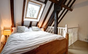 The open plan living area has a sitting room, dining area and has a brand new fully equipped kitchen, upstairs there is a king size galleried bedroom, and bathroom with bath and waterfall shower.