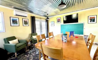 The mini kitchenette includes a fridge, sink, coffee maker, and microwave. Outside, relax on your private patio or explore our common area. Dive into the new pool, stargaze from the hot tub, and enjoy games like Corn Hole. The fully equipped outdoor kitchen features a gas grill, 2 charcoal grills, and more.