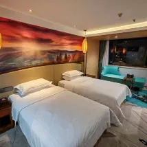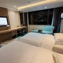 總體入住很滿意的一次入住體驗,服務令人印象深刻,我感受到了温馨與關懷。酒店位置非常便利,位於市中心,處於繁華地段,旁邊就是區莊地鐵站(5/6號線),步行3分鐘就到。接待員小兵態度親切,服務周到,入住還贈送了歡迎茶,瞬間就感到一陣温暖。安排的房間很滿意,寬敞,一家人入住一點也不擁擠,客房設施完善,空氣南北對流通風,沒有異味,空調冷氣給力。房間WIFI流暢,刷視頻一點也不卡。酒店前台提供耳塞、護理包、皮筋、創可貼、眠眼罩、洗臉巾、指甲鉗、礦泉水等等。酒店還有24小時管家服務,全天在線,有什麼問題隨時解決,也可以在線吐槽。總體來説,這家酒店給我留下了深刻的印象,酒店環優雅的環境和暖心的服務, 讓人流連忘返,這家酒店的服務理念是:暖心服務、關愛備至。他們實至名歸,值得推薦和信賴,如果下次來廣州,還會選擇這家酒店!!!