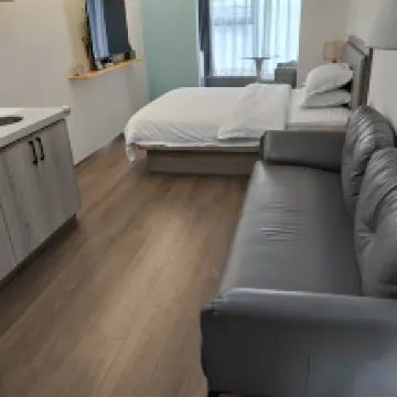 Классный номер в современном стиле. Находится в жилом доме. Хозяин всегда на связи. Станция метро рядом. За 4 дня было ощущение, что ты не в отеле, а в собственном доме. В номере есть все, что нужно: чистое постельное белье, мягкие полотенца, гигиенические принадлежности. Очень рекомендую!