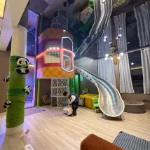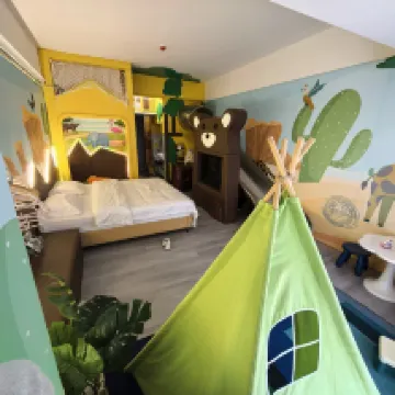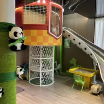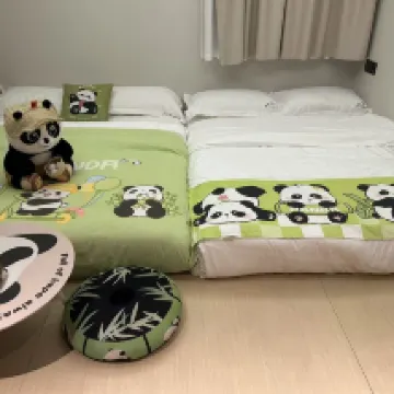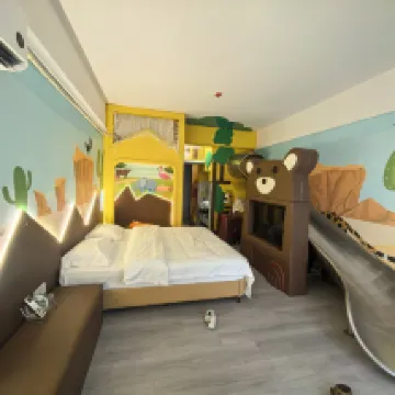 親子民宿離長隆野生動物園很近,一樓小童區大滑梯、攀爬網、積木桌全齊,帶娃黨的福音!一進房間全是軟fufu的熊貓元素,床榻舒服乾淨温馨!適合家庭出行!