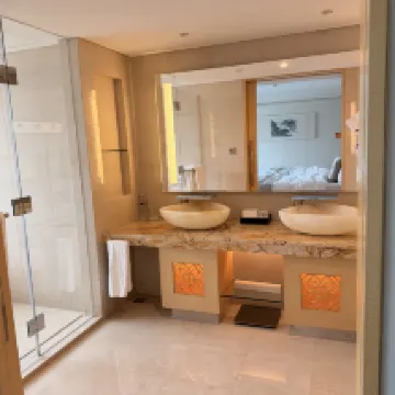 話不多説了,整體都很棒了,懂的都懂,酒店每個餐廳都吃的好吃,包括早餐也很好吃,行政江景房很愜意,行政酒廊辦理入住退房,訂餐位都很方便,寶寶生病了趕上除夕,行政酒廊吃的現熬白粥,退房結算一看掛賬説免費送的,真的暖心。衞生清理也很及時,寶寶洗漱包超可愛,最值得説的就是這房陽氣太足了,雖然沒露台,但是房裡晾衣服一晚就幹了,絕了!禮賓也很靠譜,訂的生日蛋糕給冰箱保存,唯一缺點就是電話太難用了。