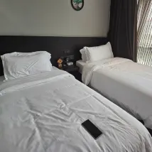 The room itself was well-equipped with all the necessary amenities. However, due to the humidity, there were some black mold stains on the wall. If you are not too concerned about health issues, it might not be a big problem.