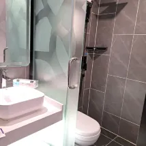 The room wasn’t very clean, there were stains on the wall. The toilet and shower are in the same tiny space, so the toilet paper gets soaked when you shower. It takes at least 5 minutes for the water to get hot, and the room stayed cold even with the AC off.