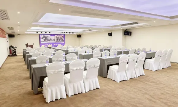 飯店一樓設有可容納60人的自助餐廳,環境高雅舒適。另設有128平方的商務會議室,採光充足,是舉辦各類活動的上選。