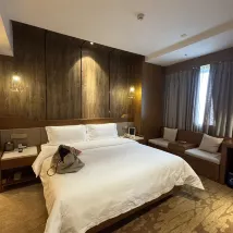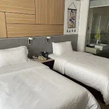 很糟糕一次入住體驗。吐槽點巨多: 1、入住,現在什麼年代還有要先扣按金的,好多年沒有遇到了。 2、早餐,難吃就算了,走的時候兩大一小總共拿着一跟🍌準備邊走邊吃,出門攔下説衹能開了吃完自己不能帶走,吐血 3、辦公地方枱燈,知道你房間暗,再暗也不能辦公桌頭正上方安裝,每次凳子上起來頭都會碰到,2-3次,我也是不長記性。但設定這樣也是無語。 4、最後讓我前台爆發的是,1點左右離開酒店,離開前問了一下前台最遲幾點退房,説是1點。剛好,我説我吃個午飯回來再退很快,我老婆小孩在吃飯地方。説不行。呵呵,你真那麼著急讓我退房也是你先通知告訴我,好傢伙問了就馬上要退。 總體都是很守規則一樣,但是我是來住宿消費,不是來看規則的,在不影響酒店情況下是否可以靈活處理你們好好考慮。員工不管客户差評,管理者不能管理員工嗎。 總得來説,消費800多一晚,體驗到200比民宿還要差的體驗感覺。