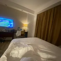有點失望,預訂了豪華大床房,看介紹視頻和圖片感覺都不錯。實際房間比較小,室內傢俱比較舊。坐墊和抱枕已經有有污漬。洗手盆是有裂痕的。浴缸是漏水的。一直倒不滿。難得的週末約會體驗咁不好。