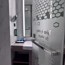 酒店位置方便,步行到地鐵站很近,周邊吃飯購物都很全。房間設施很新,智能馬桶、高清電視都有,衞生間乾濕分離做得好,洗漱一點不擁擠,性價比絕了,酒店服務也超級好,前台小曹很熱情,下次還來