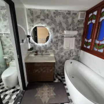 很驚艷的房間!!!完全沒想到如此好!一開始定的其實是另一個民宿,在入住前半個小時因為那個老闆有問題被迫取消,這個是我在廣州地鐵站裏極限半個小時找到的,一進門真的很驚喜!!!獨特的裝修,乾濕分離的廁所,還有旋轉小樓梯,樓上遇到下雨喝茶坐坐還挺好玩(樓上沒拍照捏)。沙發很軟,床也很軟,房間很乾凈整潔,中午有阿姨幫忙打掃扔垃圾捏(介意需要提前和管家説一下),自助入住對i人很友好。房間是在寶華路附近,離上下九很近,繁華地段安全滴。不用擔心吵附近步行街十一點半就基本都關門了(沒辦法逛夜市吃宵夜),隔音感覺一般般不過晚上真的很安靜。住到如此好的房間,真的很驚喜🥰,三天兩晚的廣州短途旅行真的非常推薦!(房間沒洗衣機,有洗衣需求的就沒辦法啦)