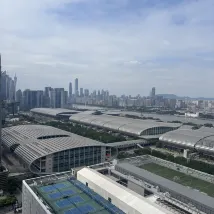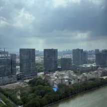 Right next to the Canton/Pazhou fair complex though my view was the other side. Easy check in and the room was clean and comfortable. Everything worked. Charged 300rmb deposit but there was no minibar. Refunded at checkout
