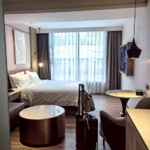房間整潔,前台工作人員會説英語,進出都會跟我們打招呼,房間設備都是觸控平板控制,非市場高科技,離地鐵站步行五分鐘