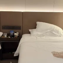 衞生很差、竟然不更換床單,連基本的衞生標準都達不到。我們入住的床單上竟然有不知名血液,真的很膈應,萬一這血液有傳染源,酒店能負責嗎?睡了一晚上真的很噁心。當天晚上十點多才入住,早上醒來看見被子前端有血液痕跡,叫來保潔查看,發現裏面被芯也有血液。我們兩個女生無傷口,無例假,不可能出現這個面積的血液。我們也讓酒店查驗垃圾桶等等,確認血液不是我們的,我們也可以配合拿血液去檢驗。酒店卻説不是他們的問題,他們床單一客一換,言外之意還有我們是睡醒才發現這個問題,可能是我們自己弄到之類的,(問題上大晚上入住誰還有空把你的被子翻開來看呢?)他們沒辦法承擔這個責任。除了口頭闡述,客房部拿不出任何自證的訊息,不承擔責任。令人無語。如果不是當天是中秋趕時間,我們一定會把這個事情徹底弄清楚,必須把責任劃清!三次溝通説給我們伴手禮補償或者申請8折折扣,我們拒絕了,我們的訴求是必須承擔這個責任,起碼退還一半的房費。酒店回覆説衹能打7折,送個香薰,我們全部拒絕。我們不差這幾十塊錢,但是酒店方對於衞生管理的疏忽所承擔的後果太輕浮,這樣的酒店管理令人咋舌。這酒店這樣處理客訴,不知道怎麼還能開業幾年並保持高分的,想要衞生達標的,避開這家酒店。