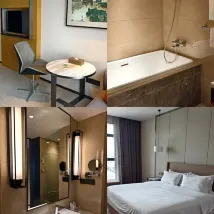 和朋友結伴旅行,入住這家酒店收穫了滿滿的驚喜!酒店設計感滿滿,整體裝修温馨又不失時尚感,大堂的休閑區域很適合朋友小聚聊天,現在還有聖誕限定的應景佈置,拍照超級出片。房間空間很大,兩個人住完全不擁擠,床品乾淨舒適,大浴缸睡前泡泡澡十分愜意。衞生方面也是無可挑剔,房間每天都打掃得乾乾淨淨,工作人員熱情又專業,得知我們是來旅遊的,還主動推薦了當地的特色景點和美食。周邊交通便利,打車、坐公交都很方便。整體體驗感超棒,性價比高,朋友都説下次來還要住這裏!!