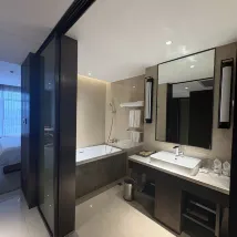 整個入住過程都很舒適,不管是大廳還是公區空間感都很不錯!!有時間還可以去 長廊、一樓的休息廳、 百葉窗拍照都yyds,剛來的時間酒店還在佈置場景 ,馬上聖誕節氛圍感也是開始步入了,酒店設施也非常齊全,洗衣房、停車場、充電樁都有,房間做的乾濕分離,全身鏡跟大面鏡很方便,拍照什麼的也都很出片!!!而且旁邊就是一個很大的萬福廣場,吃喝玩樂都有了。性價比高,淡季跟朋友一起來住才人均100+