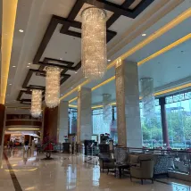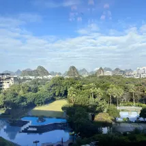 酒店建築宏偉,內部超豪華,客房面積大,窗外風景美,內花園是夜間散步好地方。早餐豐富,中餐廳廚藝高,菜品美味,服務周到,還為遊客備了免費油茶,西瓜。打車起步費到疊彩山景區,風景如畫,是拍照網紅地。內還有著名民主人士故居,葉挺被關壓的山洞。非常享受的一次入住。