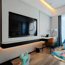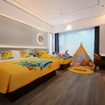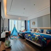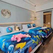 We stayed in the family theme room and were very impressed! It was spacious, with one king-size bed and a super single bed—almost 130cm wide, which comfortably fit our family of two adults and two children. The location is also very convenient, close to several shopping plazas and restaurants.