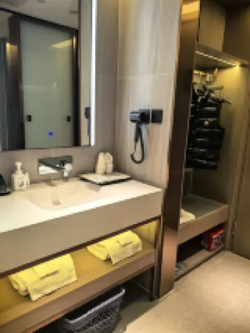 特別好評,房間光線好,温馨舒適,乾淨整潔,睡眠安心,無噪音無異味,自動雙層窗簾。浴室乾濕分離,一次性用品齊全,大堂旁還有健健身器材。餐廳早餐品類齊全,尤其贊現煮的細絲麪和現煮的咖啡。前台服務服務態度很好,熱情周到,美女黃鑫和白檀急顧客之所急,體貼周到,親切細緻,總之非常滿意!感謝她們!