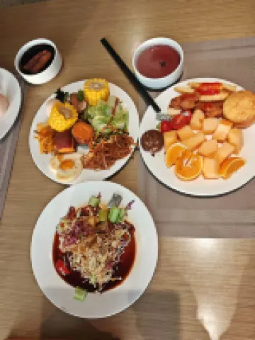 到酒店時間很晚了,服務員非常熱情,特別表揚一下羅勒,半夏兩個小姑娘,由於定的雙床房有前期客人留下了很濃的榴蓮味,兩位小姑娘耐心的為我們調整了房間,酒店很乾凈,早餐也比較豐富,很不錯的酒店