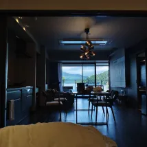 因為是自助酒店,所以服務就衹給4星了,suiran遠程服務還不錯。位置是真的好,就在成川美術館旁邊,緊鄰湖邊,視野非常好,幸運的看到了富士山,景色真心不錯。早餐是提前放冰箱裏的,湊合著吃吧。有烤肉架,整點和牛自己烤,非常不錯。房間很寬敞,可以投影,加上提供免費紅酒、啤酒和軟飲,太適合度假了。房間帶泡池,正對着湖和富士山,泡湯賞景,太愜意了~