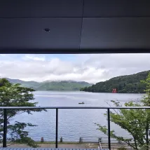 湖景nice,附近100m有個很大的711,基本所有東西都可以買到。交通的話在箱根汀港旁邊,是個大站,坐船或者公交都很方便。酒店設施很好、很新而且私湯!好評,如果來度假或者休息很合適! 圖片是陽台拍的!