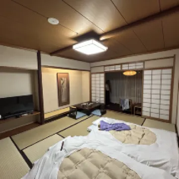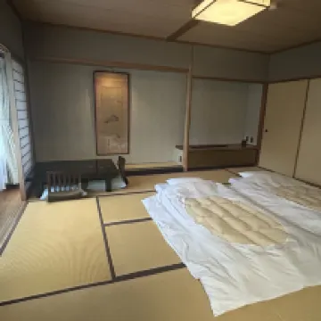 這家旅館看起來像一家小型家庭式旅館,但實際上它是一個大型飯店綜合體,裡面有日式客房(也有歐式客房)。我們對飯店的服務評價不高,因為我們下午5點在前台預訂早餐,前台讓我們晚點到,而我們兩個小時後(晚上7點)才到,卻被告知早餐只能預訂到下午3點。我不明白他們為什麼要這樣牽著我們的鼻子走。溫泉區很漂亮,但除了兩個熱水池(一個在室內,一個在花園裡)之外,什麼都沒有:沒有冷水池,也沒有桑拿。另一個缺點是空調噪音很大,即使關掉空調後也整晚嗡嗡作響。結果,我們沒能睡個好覺,而這正是溫泉度假的期望。而且沒有空調,房間很快就變熱。總的來說,每晚240美元的價格,這樣的服務水準似乎不夠。