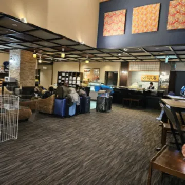 大堂很舒服,景色很好,很温暖。服務員態度認真負責,可以自助辦理入住,大堂有免費的飲料,房間很乾凈,很舒服。