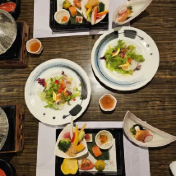 位置很好,距離纜車不遠,所以步行到達住宿地點並不困難。如何搭乘纜車到達觀景台、湖泊、公園。房間很寬敞,有桌子,有碗碟,有水壺,有茶,適合晚上聚會。從窗戶望出去,是一片花園,櫻花正綻放著絢爛的色彩。晚上,我們必須自己整理地板上的床,但這並不難,因為衣櫃裡的所有東西都已經整理好了。此樓層有免費按摩椅。這真是太棒了!我們已經付了早餐和晚餐的費用。依入住時約定的時間提供服務。菜餚的擺盤和裝飾都非常精美。我們吃太多了。呆了一天。我們晚上和早上都去了溫泉。可以預訂私人溫泉,但我們決定不這樣做。您所需的一切都在房間裡,或者可以從接待處附近的開放通道取用。大廳提供免費飲料。我喜歡一切。