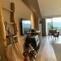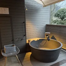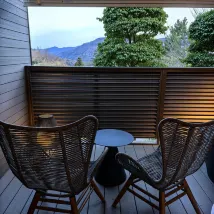 很棒的酒店,景色令人驚嘆。服務很棒,我們受到了英語的歡迎,所以入住和退房都不是問題。當我們有問題時,工作人員也非常樂於助人。 唯一需要考慮的是,酒店不太容易到達。我們要從路邊的公車站步行大約15分鐘。我相信有班車,但我們沒有使用它。對我們來說這沒有問題,但對於老年人或帶著小嬰兒的人來說可能會很困難。此外,我們在私人溫泉中聽到了樓上房間傳來的腳步聲,以及隔壁房間裡的人說話的聲音,因為露台基本上是相鄰的。我建議在外面吃飯,因為步行可達的地方有很多很棒且價格實惠的選擇。 總而言之,住得很愉快,我只能推薦。