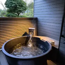 這家温泉酒店超讚我們5個人訂了4間房每間房都有温泉泡池房間很大早晚餐也非常的豐富服務非常的周到就感覺自己少訂了應該多住兩晚下次再來哈。在房間裏泡着温泉看着外面的風景非常的愜意。