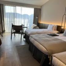 酒店位於山上,環境寧靜,房間和設施很新淨,大堂有提供自助飲品區域,早餐有2款set揀,晚餐是西式,出乎意料地不錯,值得一試。酒店有泳池,比想像中大,很適合一家大小,有淺水區域給小朋友玩,公眾溫泉相對比較普通,附近有漢堡包店,燒肉店,酒店位置比較適合揸車人士,但整體而言,是一間令人放鬆的酒店。