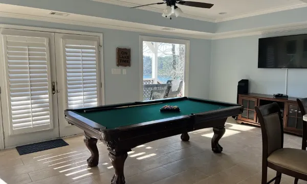 We had a wonderful weekend stay! We watched movies in the theater room, played the table games, board games, we rented a pontoon and it was an easy pick up from the dock. We sat on the roof top deck and enjoyed watching fish jump. The house set up was great for our dinner! We really had a great time and everyone loved how you could see the lake through all of the windows!