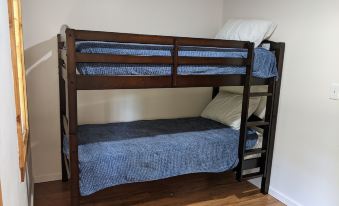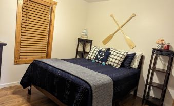 Newly remodeled, clean modern yet cozy cottage on the north end of Lake Lanier. Everything is brand new - appliances, HVAC, electrical, etc. Bedroom with comfy queen bed. Second bedroom with bunk bed. Large tile shower w/ multi-jet shower head. Gas fireplace inside, firepit outside. Large yard for playing horseshoes or bocce ball (provided). BBQ Grill with everything needed. Lake is short walk away across wooded 10 acre lot and public boat launch is less than 3 miles away. Less than 30 minutes from Helen, Dahlonega, North Georgia wineries and hiking trails.About pets:Pets allowed: dogs and cats less than 20 lbs per pet (limit one pet total).About checkOut:Check out before 11:00 AM.About children:Children allowed: ages 0-17.House is not baby-proofed.About checkIn:Check in after 4:00 PM.About smoking:Smoking is not permitted.About events:No events allowed.