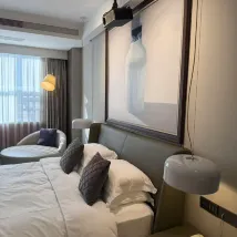 忙完一天工作,回到酒店瞬間能放鬆下來,房間隔音特別好,關上門完全聽不到外面聲音,床墊軟硬適中,睡一晚精力滿滿,衞生間乾濕分離做的很好,熱水出水很快,不管接送站還是退房時間,細節地方做的很好,體驗超棒!