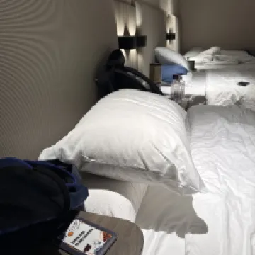 The triple room we got had a decent size. Bathroom size and cleanliness were okay. Rooms were cleaned daily and restocked with water, towels and toiletries. Staff were kind and assistive. Breakfast can be bought separately for a very affordable price. Data signal on the first floor is weak but wifi was okay. Our our stay could have been better if the room came with a refrigerator but otherwise we had a good stay. Good value for money.