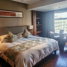非常棒的寶藏酒店,國慶節期間還給免費升了級。房間超大,衞生間區域寬敞明亮,還是雙衞雙台盆的配置。整體中式風格裝修讓人很安心,床品也舒服,衹是中央空調有些噪音,不過關掉之後房間温度也挺舒適的。下次來杭州還要住這個酒店~