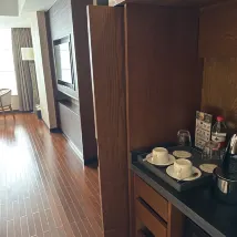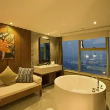 外觀看上去一般,前台廳也不大。但一進門就驚艷了,非常寬敞,觀景大浴缸,衞生間也很大,還有化粧台。總之非常滿意,有求必應的前台,機器人送餐,小巧精緻的自助餐廳還有臨走前的貼心關懷,送了孩子小零食。滿意👍