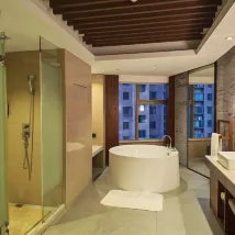 親愛的朋友,您好!感謝您對我們的好評。雖身處鬧市之中,卻不染絲毫煙花,這是我們想給您帶來的感覺。一天的行程讓您倍感疲倦,不如在浴缸泡個熱澡,褪去一天的辛勞,再小酌一下MiniBar的飲品,就着一本閑情小書,安然結束忙碌的一天,這是我們為您提供自由放鬆的空間。相信我們還會再次在君亭相遇,祝福您幸福開心每一天!