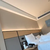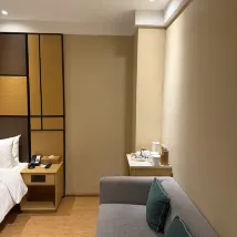 這次入住非常滿意!地理位置優越,靠近地鐵站,隔壁就有小賣部。房間乾淨寬敞、空氣清新,設備齊全,免費礦泉水很充足。冷氣很給力,外賣可以機器人送上樓,保潔阿姨也很熱情。前台服務態度很熱情負責。