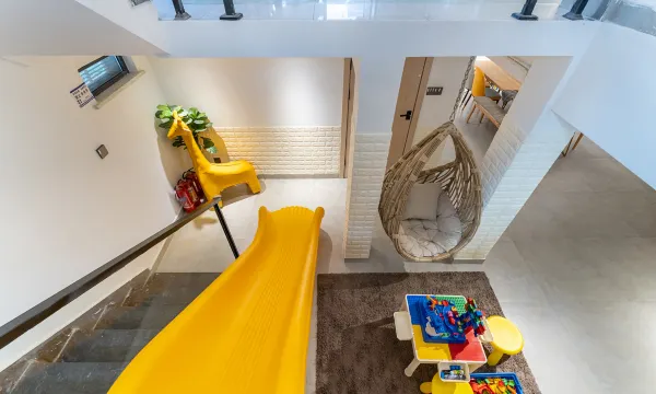 民宿為獨棟建築,房型有親子房,陽台大床房和標間,可以滿足不同顧客的需求!民宿裝修風格為簡約的輕奢ins風(寬敞的房間,大落地窗,陽台的鞦韆……)。不管是發呆還是閒坐,都能讓大家渡過一段美好的休閒時光!同時還搭配了適合小朋友玩耍的滑梯和樂高積木,讓小朋友也能在這裡盡情玩耍,給年輕的父母安心的放個假!同時民宿開設了自己的咖啡館,住宿顧客還可以享受咖啡,除了咖啡還有飲品,芋圓,下午茶,出門旅行度假休閒的好去處~
