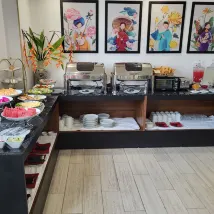飯店麻雀雖小,五臟具全,乾淨的環境,簡單的自助式早餐,服務員親自詢問是否要牛肉河粉,櫃台親切介紹飯店設施與規定,還幫我們完成生日蛋糕預訂,房間佈置,只能說讓人感到溫馨,像貴賓一樣被招待