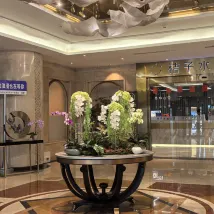 酒店環境很好,大堂裝飾很高大上。位置很好,去哪都方便。前台小美女服務很好。大堂還有茶歇和免費的飲用水,房間很大,房間的設施很齊全,然後樓層很高,很安靜。房間床品很舒適。點外賣都是機器人送餐安全性滿滿。