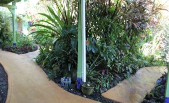 The studio apt. is upstairs has a great deck to view garden. Follow sidewalks to Tropical gardens at back of house,coconut palms, orchids , anthuriums and lush tropical plants.