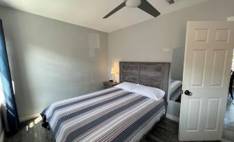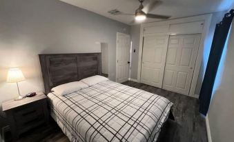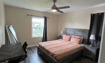 This house is a great place to book if you are a party of 7 people. There are 2 (two) bedrooms with Queen size beds in each room with an additional roll out bed in the room if needed! In the living room there’s a queen size sofa bed. In the bedrooms each doors have code locks to enter or lock door. In the living room you will also find a 45" Smart TV with Netflix. We do provide free Wifi! This entire house is fully equipped with everything you and your family or guests will possibly need during your stay. All required amenties such as pots and pans, silverware, blender, toaster, and etc. you will find in your brand new kitchen with brand new appliances. In the backyard there is propane BBQ grill, fire pit, and patio chairs to relax.