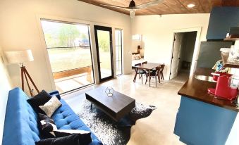 Tom Dooley’s Hideout is located at the Gateway to the hill country, just minutes west of Dripping Springs off of hwy 290. It’s a unique 4 acre property with 5 modern tiny houses that sit on open range with free grazing livestock which occasionally show up as they do not belong to us. This tiny house comfortably sleeps 2 on a queen bed but we do have a sofa/futon that's great for kids. Enjoy sitting on the porch or at the picnic table under the trees to kick back and relax on a cool evening. We do allow pet guests but want to note that there is a $40 fee PER pet PER night so please be sure and include them on your reservation.About pets:Pets allowed: less than 50 lbs per pet (limit 2 pets total).About checkOut:Check out before 11:00 AM.About children:Children allowed: ages 0-17.About checkIn:Check in after 4:00 PM.About smoking:Smoking is not permitted.About minBookingAge:Minimum age to rent: 25.About events:Events allowed: family gatherings, birthday parties, weddings.Maximum event attendees: 20.